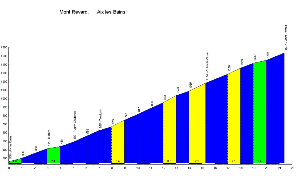 Montée au Revard du dimanche 15 Avril en vélo pour réaliser des vues panoramiques depuis le sommet,superbe temps ensoleillé et chaud pour effectuer cette ascension en 1h28'30" pour les 21km500 ,la visibilité vers le lac du Bourget et Aix-les-Bains est bonne voilà ce que cela donne à 12h 15'.Le profil de la montée du Revard par aix-les-Bains.